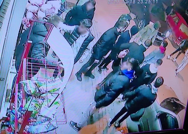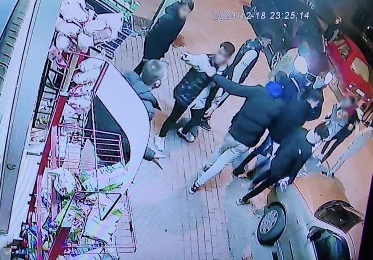 Gençlerin markete sığındığı, diğer şahısların marketi bastığı ve market sahibinin şahısları püskürtüp kavgayı sonlandırdığı anlar güvenlik kamerasına saniye saniye yansıdı.