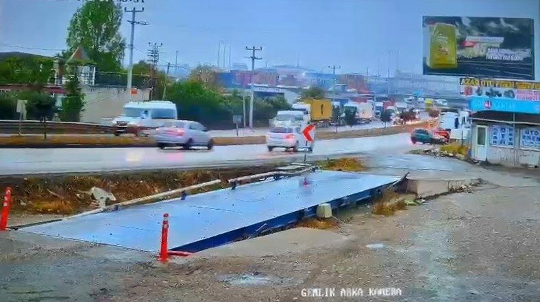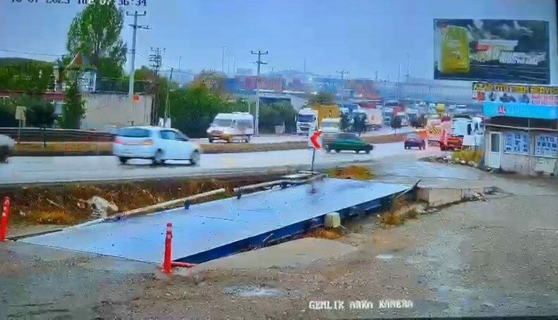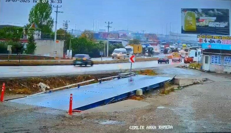 Yaşanan kaza anı saniye saniye güvenlik kameralarına yansıdı. Otomobilin yağmur sebebiyle kayganlaşan yoldan savrulması ve çarpma anı herkesin yüreğini ağzına getirdi. Refüje savrulan otomobildeki sürücü Serdal B., ihbar üzerine olay yerine polis, itfaiye ve sağlık ekipleri tarafından çıkarıldı. Ağır yaralı olan sürücü, Gemlik Devlet Hastanesi’ne kaldırıldı.