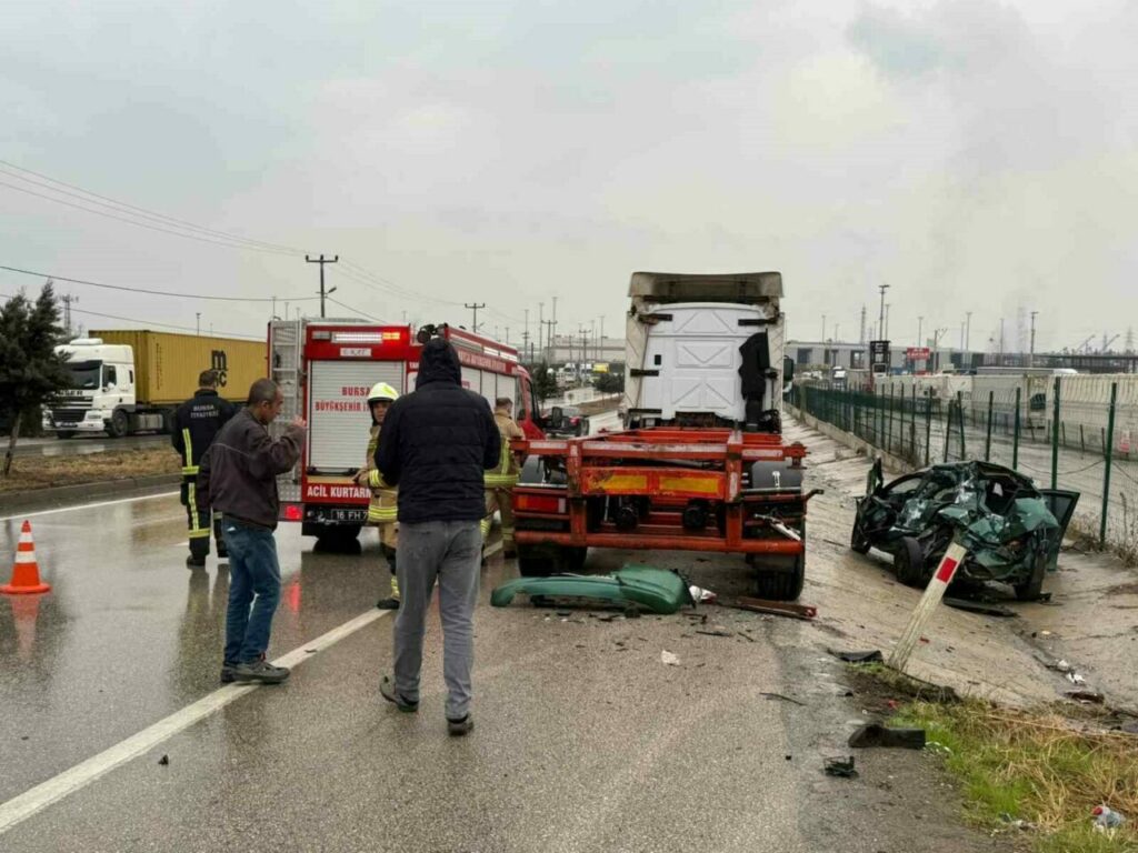 Kaza, sabah saatlerinde Serbest Bölge Liman ve Fabrikalar yolunda meydana geldi. Edinilen bilgiye göre, Serdal B. (30) idaresindeki 16 AET 014 plakalı otomobil, yağmur sebebiyle direksiyon hakimiyetini kaybetti. Kontrolden çıkan otomobil, yol kenarında park halinde bulunan tır ile elektrik trafosuna çarptı.