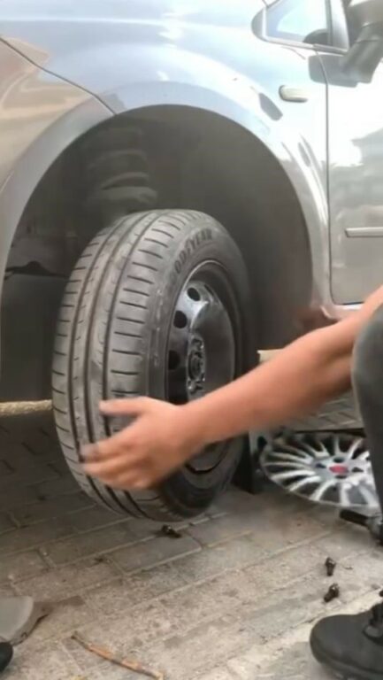 Bursa’da lastiğin içine giren yavru kediyi çıkartmak için vatandaşlar seferber oldu.