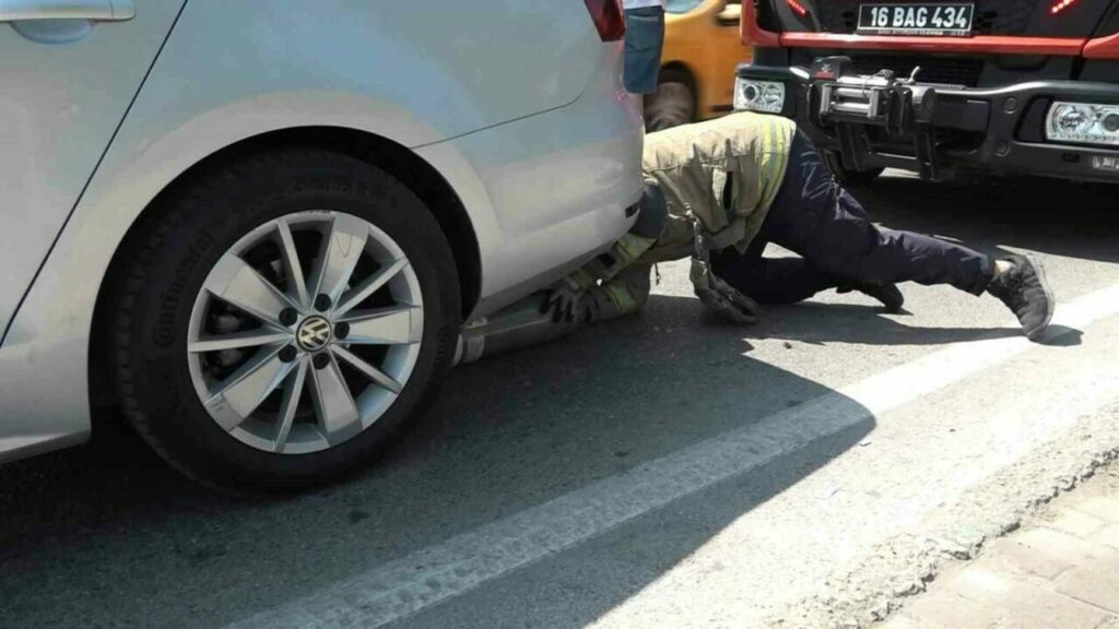 Yüzlerde tebessüm bırakan olay, merkez Yıldırım ilçesi Meydancık Mahallesindeki trafik ışıklarında meydana geldi. Kırmızı ışıklarda bekleyen başka bir otomobilden inip, yanındaki otomobilin altına giren yavru kedi, trafiği kilitledi. Sürücünün fark etmesi üzerine ne yaptıysa çıkmayan minik kedi için itfaiye ekipleri seferber oldu. İlk önce motor kısmı kontrol edilen otomobildeki kedi için ‘kedi sesi’ açan ekipler, karşılık buldu. Sese miyavlayarak cevap veren kedi ortaya çıkmayınca, ekipler oksijen tüpü ile hava tuttu.