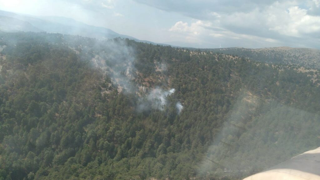 Bursa’nın Keles ilçesi ve Kütahya’nın Domaniç ilçesi sınırında ve İçmeler mevkisinde yıldırım düşmesi sonucu ormanlık alanlarda birbiri ardına yangınlar başladı. Keles ve Domaniç Orman İşletme Müdürlüğü 1 helikopter 8 araç 26 personel ile yangınlara müdahale etti. Ekiplerin hızlı müdahalesi sonucu yangın büyümeden kontrol altına alınarak söndürdü.