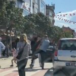 Bursa’nın İnegöl ilçesinde sürücü ile yaya arasında çıkan ’yol verme’ kavgası amatör kameraya saniye saniye yansıdı.