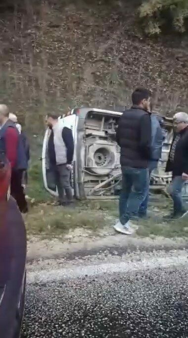 Bursa’nın Orhaneli ilçesi Kapıkaya rampasında seyir halinde olan Harmancık yolcu minibüsü, henüz belirlenemeyen bir nedenle kontrolden çıkarak devrildi. Kazada minibüste bulunan 8 yolcu hafif şekilde yaralandı.