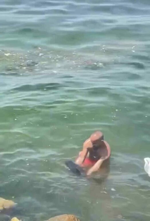 Bursa’nın Kurşunlu sahilinde ağ atan balıkçıların ağına yavru yunus balığı takıldı. Çırpınan yunusu fark eden balıkçılardan biri hemen suya atlayıp, yunus balığını kurtarmak için seferber oldu. Dakikalarca uğraşan balıkçı, yunus balığını ağdan kurtarıp tekrar denize bıraktı. Yunus balığının kurtarılma anı ise kameraya yansıdı.