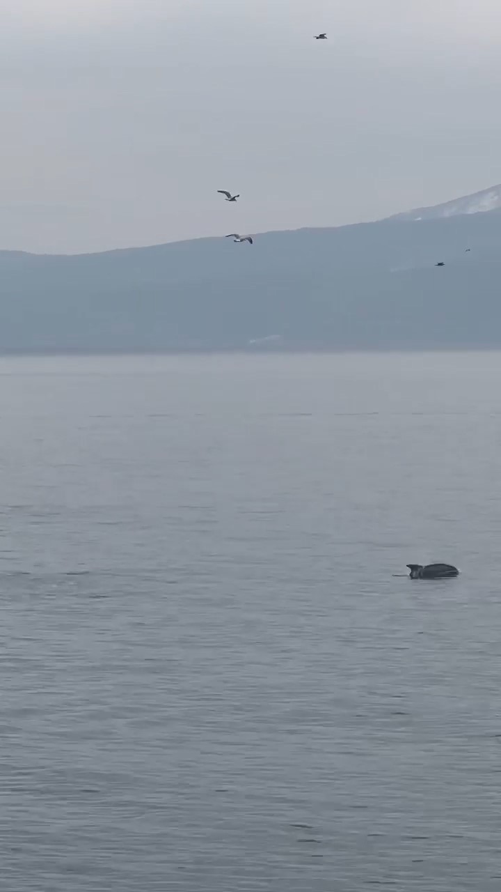 Mudanya ilçesinde zaman zaman ortaya çıkan yunuslar, sahilden kendilerini izleyenlere resital sundu. Yürüyüş bandına çok yakın mesafelere kadar gelen yunus balıkları suda uzun süre oyunlar oynadı. Zaman zaman suyun üzerine çıkan yunus balıkları bir süre sonra körfezin serin sularında gözden kayboldular.