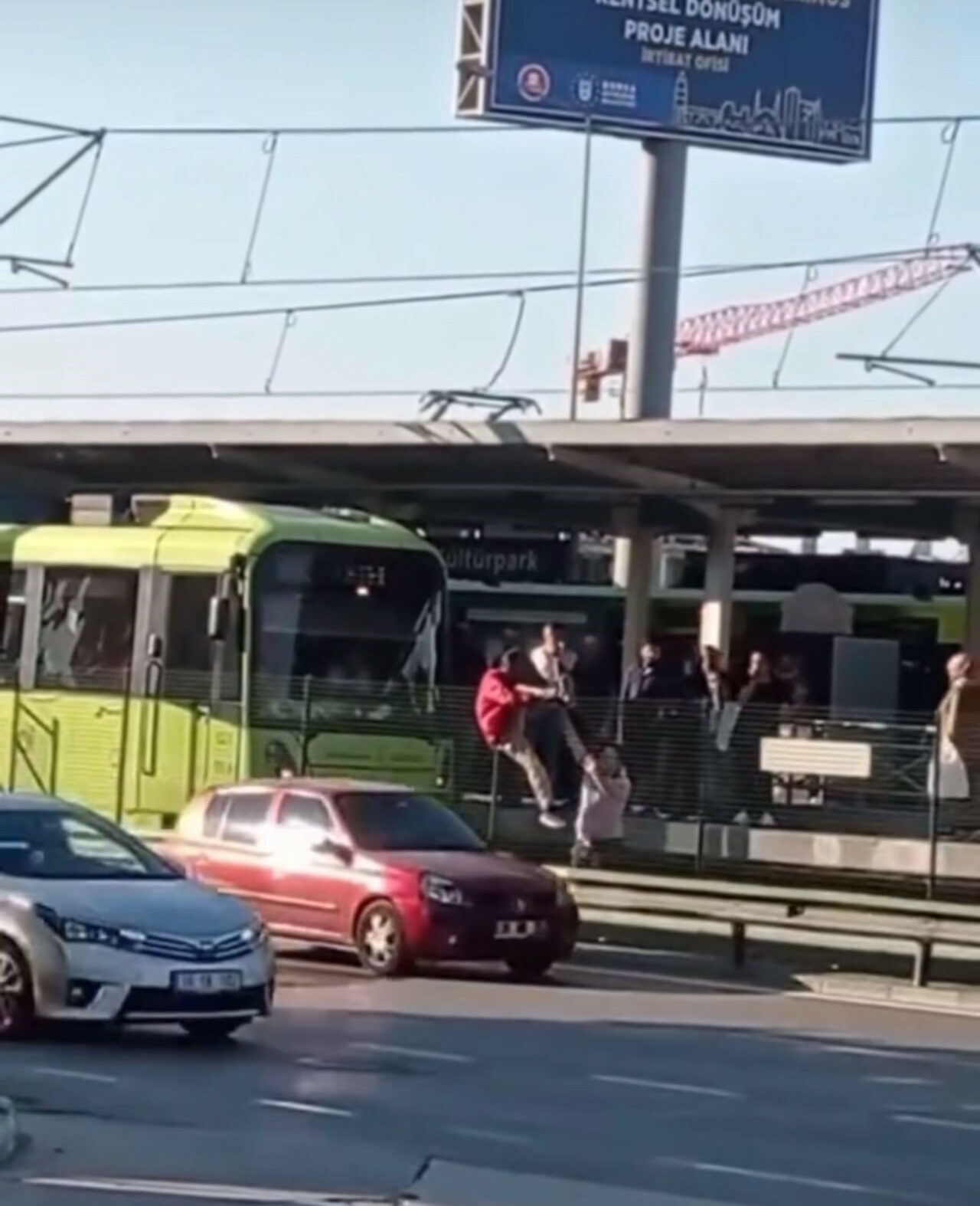 Bursa’da önce metro raylarına daha sonra koruma tellerinin üzerinde atlayarak yolun karşısına geçmeye çalışan şahıs, yürekleri ağza getirdi. Metro seferlerinin de kısa süreli aksamasına neden olan şahıs bölgeden uzaklaştı.