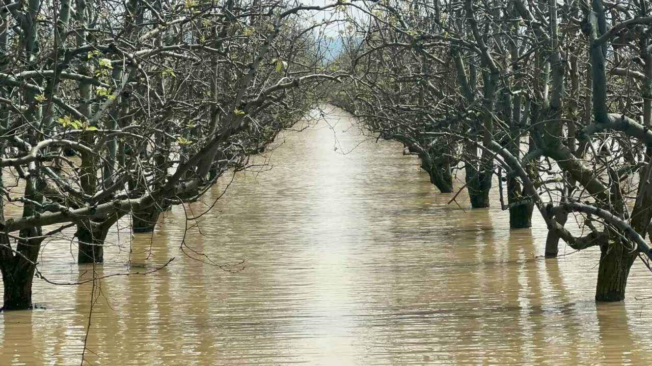 Bursa’da yüzlerce dönüm şeftali ve armut bahçesi su altında