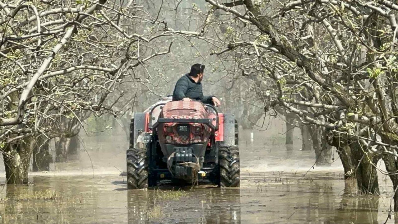 Armut bahçesine ilaçlama yapan üretici Turgay Koç ise yaşadıklarına zorluğa dikkati çekerek, “Traktörlere, bize, çiftçiye, meyve ağaçlarına yazık. 9 dönüm armut bahçemin büyük bölümü su altında. Bir hafta 10 gün su çekilmezse kurayacak. Önümüzdeki günler de yağışlı görünüyor, çaresisiz” diye konuştu.