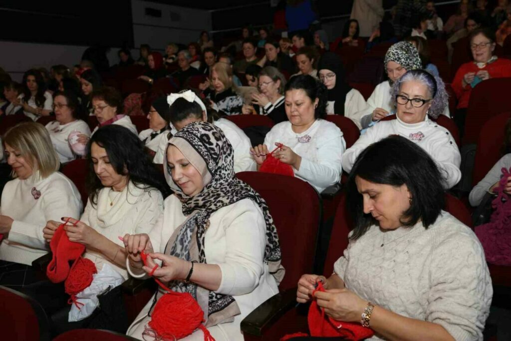 Nilüfer Belediyesi ve Elif Sanat Kültür ve Kadın Dayanışma Derneği iş birliğiyle gerçekleştirilen “Kalpten İlmekler İyilik Perdesinde” projesinde yaklaşık 200 kadın sinema salonunda hem film izledi hem de Harmancık’taki ihtiyaç sahibi çocuklar için atkı, bere ve yastık ördü.