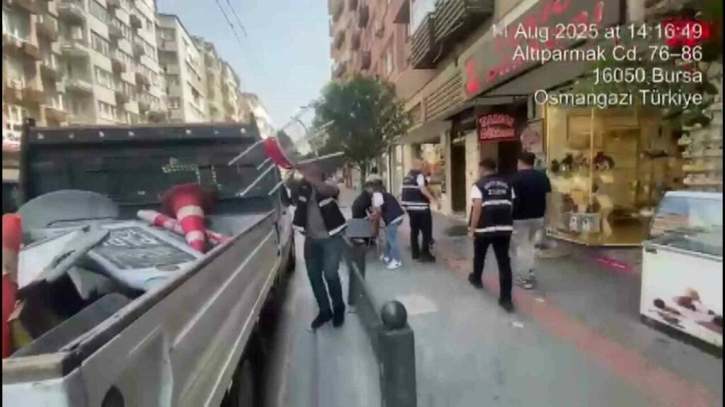 Bursa Büyükşehir Belediyesi Zabıta Müdürlüğü’ne bağlı ekipler, yaya güvenliğini tehdit eden ve sokağı kendi otoparkı gibi kullananlara yönelik kapsamlı bir denetim gerçekleştirdi. Özellikle kaldırımlara ve kamusal alanlara izinsiz bırakılan masa, sandalye, reklam tabelası, flama ve benzeri eşyaların kaldırılmasıyla ilgili yapılan çalışmalar, vatandaşlardan büyük takdir topladı. Topyekün çalışma başlatan ekipler şehrin bir çok bölgesinde 1 saat içinde sokak ve kaldırımları dört koldan temizledi.