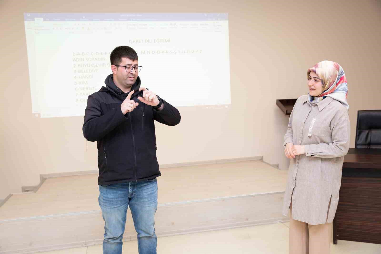Bursa Büyükşehir Belediyesi, işitme engelli vatandaşların iletişim konusunda yaşadıkları engellerin ortadan kaldırılması ve kamu hizmet noktalarında hayatlarını kolaylaştırabilmek için Zabıta Destek Hizmetleri Şube Müdürlüğü bünyesinde özel güvenlik görevlisi olarak çalışan personele “Türk İşaret Dili Eğitimi” düzenledi.