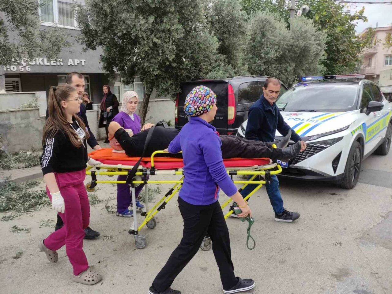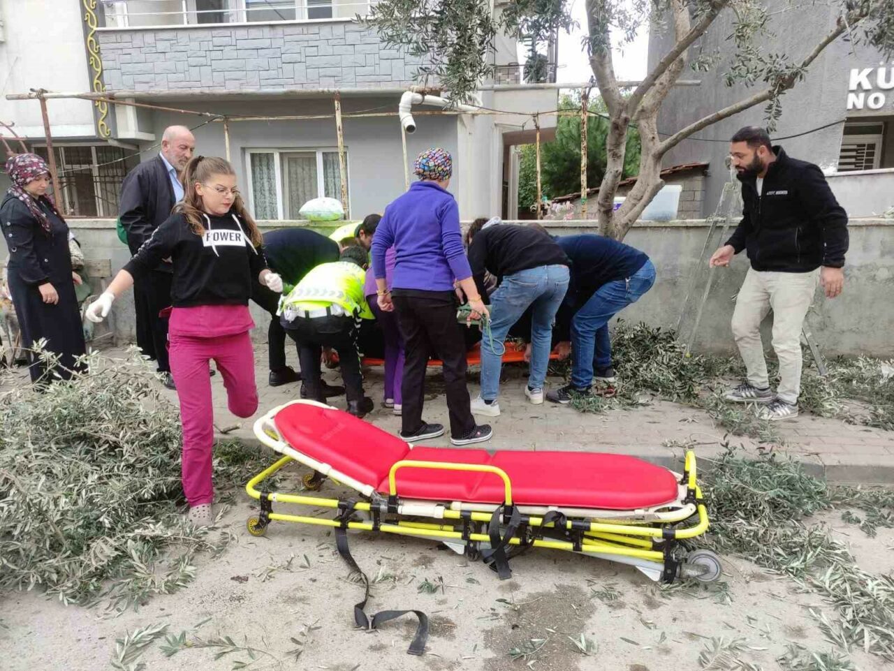 Alınan bilgiye göre; İsmail Aygünoğlu (78) kendisine ait evin önünde bulunan zeytin ağacındaki zeytinleri topladıktan sonra ağaçta budama yapmak için merdivene çıktı. Merdivenin kayması sonucu bir anda dengesini kaybedip beton zemine düşen yaşlı adam yaralandı. Hemen yakınında bulunan özel bir sağlık kliniği görevlilerinin ilk müdahaleyi yapıp sağlık kliniğine götürülen yaşlı adam buradaki ilk müdahalenin ardından ambulansla Orhangazi Devlet Hastanesine kaldırıldı. İsmail Aygünoğlu’nun hayati tehlikesinin bulunmadığı belirlendi.