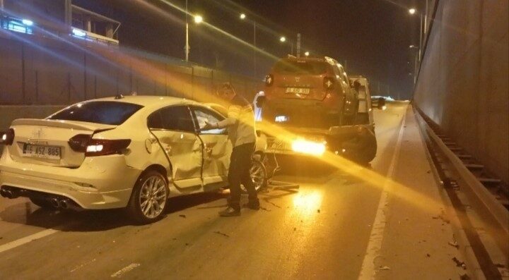 Bursa’da gece yarısı meydana gelen zincirleme kazada 3 araç birbirine girdi, 6 kişi yaralandı.