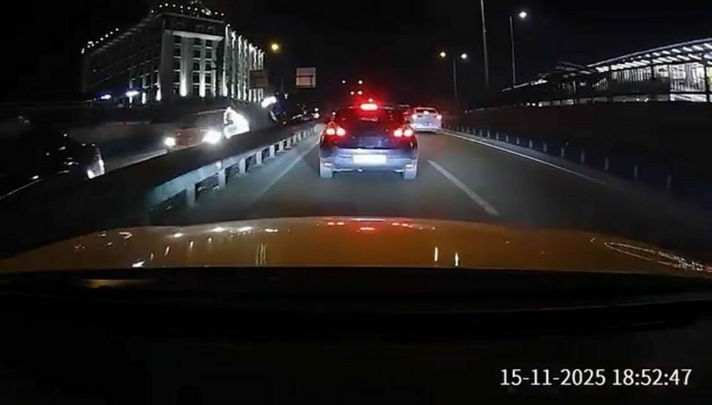 Bursa’da bir otomobil, sürücü batçıkta araçların durduğunu fark etmeyince en arkadaki otomobilin üzerine çıktı. Yaşanan zincirleme kaza, karşı şeritten gelen otomobilin araç kamerasına yansıdı.