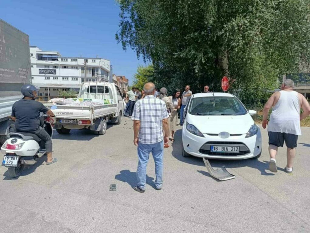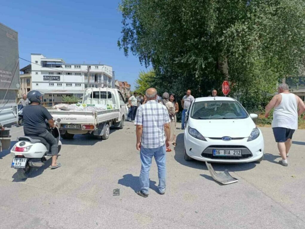 Kaza Mahmudiye Mahallesi 1. Köprülü sokak üzerinde meydana geldi. Yasin G.(24) yönetimindeki 16 KRC 06 plakalı kamyonet ile yan yoldan seyir halinde olan Sümeyye Ö.(33) idaresindeki 16 BIA 212 plakalı otomobil çarpıştı. Kaza sonucu otomobil sürücüsü ile yolcu konumunda bulunan Şeyma Ö.(7) ile Ayşe Ö.(9) hafif şekilde yaralandı. İhbar üzerine olay yerine gelen sağlık ekiplerinin ilk müdahalesinin ardından yaralılar ambulansla İnegöl Devlet Hastanesi Acil Servisine kaldırılarak tedavi altına alındı.