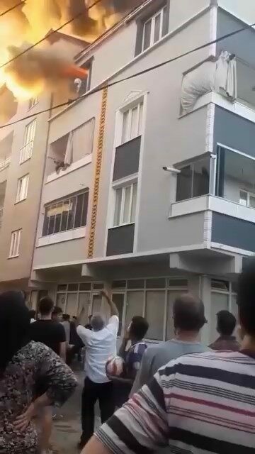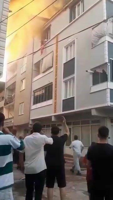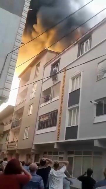 Torunun aşağı bıraktıktan sonra, kendi de camdan aşağı sarkan babaanne Neriman G., alevler cama geldiği esnada kendini aşağı bıraktı. İlk önce alt katın balkonuna çarpan babaanne, sonra vatandaşların gerdiği battaniyenin üzerine düştü.