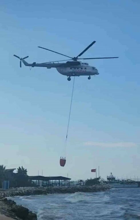 Helikopterler Kurşunlu’dan denizden su alarak defalarca sorti yaptılar. Orman ve büyükşehir itfaiye ekipleri de karadan söndürme çalışmasına katılıyor.