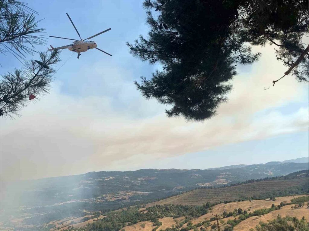 Bursa’nın Büyükorhan ilçesinde ormanlık alanda başlayan yangına bin personelin havadan ve karadan müdahalesi sürüyor.