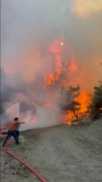 Bursa’nın Kestel ve Gürsu ilçeleri arasındaki ormanlık alanda başlayan yangın etkisini arttırarak devam ediyor. Yangına 2 yangın söndürme helikopteri ile havadan, çok sayıda arazöz ve itfaiye aracı ile karadan müdahale devam ederken, çok sayıda çiftçi de traktörleri ile söndürme çalışmalarına destek veriyor. Kızılçam ormanlarının yandığı bölgede söndürme çalışmalarına katılan Gürsu Belediye Başkanı Mustafa Işık hem Kestel ilçesi Ağlaşan hem de Gürsu ilçesi Dışkaya Mahallelerinden çift koldan söndürme çalışmaları yapıldığını belirterek,”Ağlaşan’dan başlayarak Dışkayaya kadar ulaşan yangına bir taraftan devletimizin helikopterleri diğer taraftan itfaiye ve orman ekipleri müdahale ederken Allah razı olsun çiftçilerimizde destek veriyor. Bursa’mıza Kestel ve Gürsu ilçelerimize büyük geçmiş olsun” dedi.