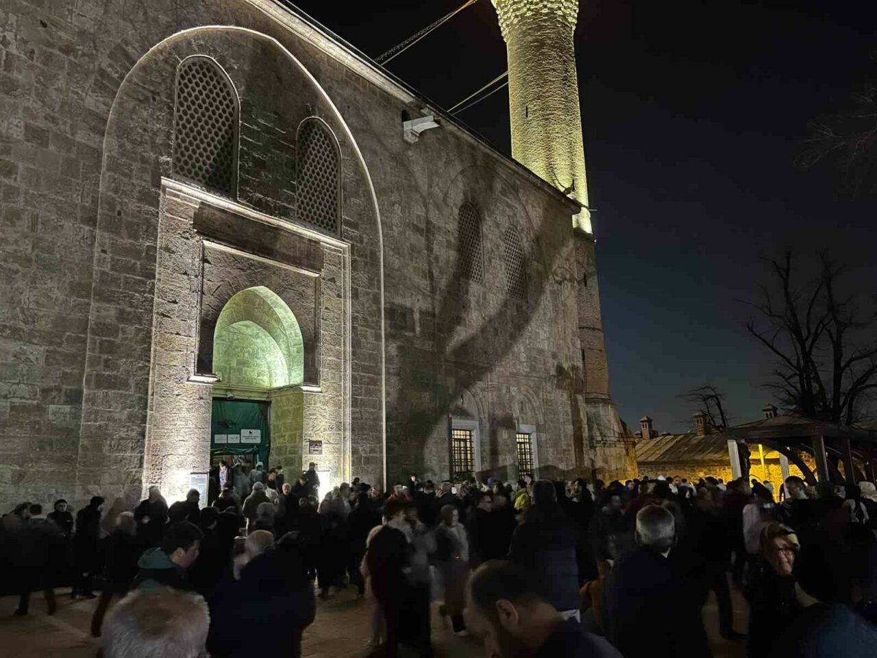 Bursa’da, selatin camileri arasında bulunan tarihi Ulu Camii’ne, ekiplerce caminin şerefesine çıkarılarak iki minare arasına asılan mahyada, “Dünyada bir yolcu gibi ol” yazısı yer aldı. Hazırlanan mahya, ramazanın ilk günü itibariyle minareler arasını süsleyecek olurken, ilçenin bir çok noktasından görülen mahya dron ile görüntülendi. Öte yandan tarihi camiye binlerce vatandaş ilk teravi namazını kılmak için akın etti.