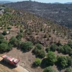 Bursa’nın Büyükorhan ilçesinde ormanlık alanda çıkan yangın kontrol altına alındı. Ekipler, rüzgardan dolayı yangının tekrar başlamaması için yanan yerlerin etrafını dozerler yardımıyla çevirdi.