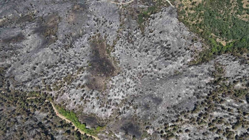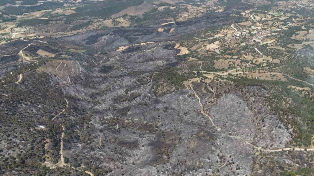 Bursa’nın Büyükorhan ilçesinde ormanlık alanda çıkan yangın sabah saatlerinde kısmen kontrol altına alındı. Rüzgarın etkisiyle tekrar başlayan yangına ekipler seferber oldu. Bademlik köyü sakinleri ev ve hayvanlarını bırakıp kendilerine kalacak yer aramaya başladı. Yanan 250 hektarlık alan havadan dron ile görüntülendi.