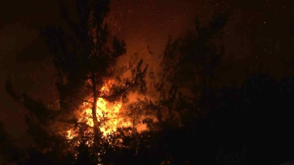 Bursa’da Kestel ve Gürsu ilçeleri arasında ormanlık alanda başlayan yangın, gece saatlerinde rüzgarın da etkisiyle büyüdü. Yangın bölgesindeki bir çiftlikte mahsur kalan hayvanları vatandaşlar kurtardı.