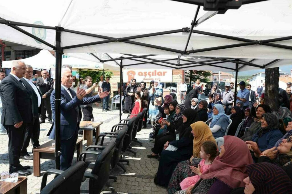 Tören alanında alkışlar eşliğinde karşılanan Başkan Bozbey, “Domaniç’i Bursa’nın 18. ilçesi olarak görüyoruz. Seçimden önce bu meydanda konuşma yapmıştım. Domaniçli büyüklerimiz, ‘Başkanım hiç merak etme, o iş tamam’ demişlerdi. Bugün buradayız. Söz verdiğimiz gibi Domaniç’i 18. ilçemiz olarak görüyoruz ve destekliyoruz. Üretim yapan vatandaşlarımıza bir nebze olsun katkı sağlamak, onların yanlarında olduğumuzu göstermek maksadıyla 44 bin metre damlama sulama hortumu ve 2.200 litre sıvı gübre dağıtımı yaptık. Çiftçimizin yüzü gülsün istiyoruz” dedi.