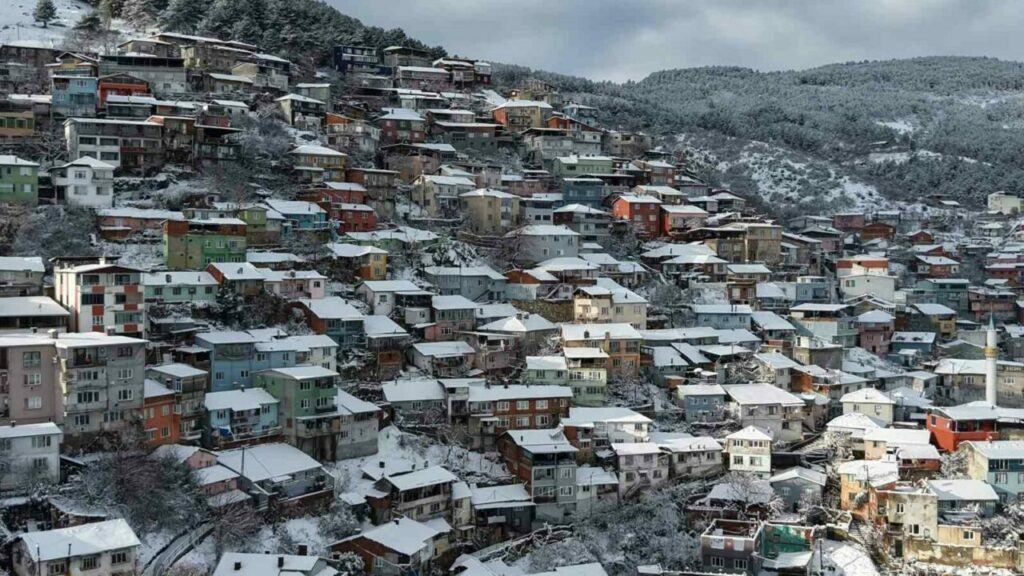 Bursa’da dün geceden beri etkili olan kar yağışıyla birlikte şehrin simgeleri haline gelen mekanları da beyaza büründü. Bursa’nın sembol olmuş yerleri karla kaplanırken, kartpostallık görüntüler ortaya çıktı. Uludağ’ın eteklerinde birbirinden farklı renkleriyle cümbüş oluşturan evler havadan böyle görüntülendi. Termometrelerle hava sıcaklığını 1 derece olarak ölçerken, akşam ise bun sıcaklığın -3 olması bekleniyor.