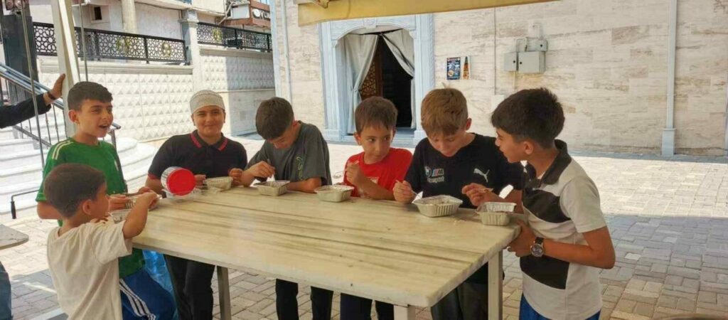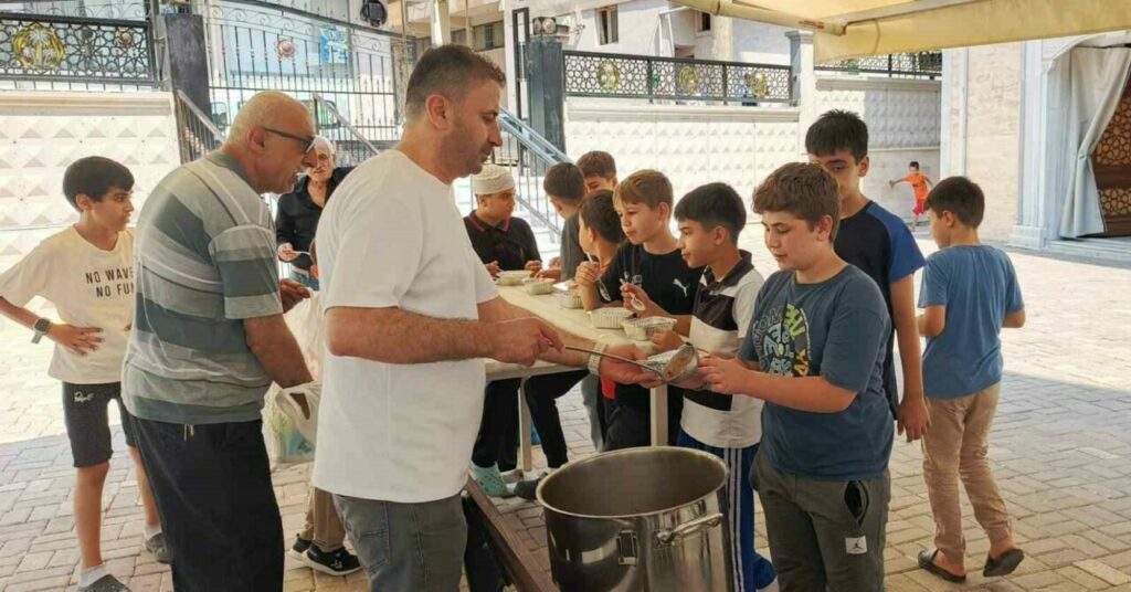 Emek Mahallesindeki Adnan Menderes Cami bahçesine kurulan çadırların altında kaynayan aşurenin kokusu tüm mahalleyi sardı. Namaz sonrası bin 200 kişiye aşure ikramı yapıldı. Aşurenin tadına camiye Kur’an ı Kerim eğitimine gelen öğrenciler de baktı. Mahalle halkının büyük ilgi gösterdiği aşureler kısa sürede tükendi. Metrelerce uzunluktaki aşure kuyruğu ise kameralara yansıdı.