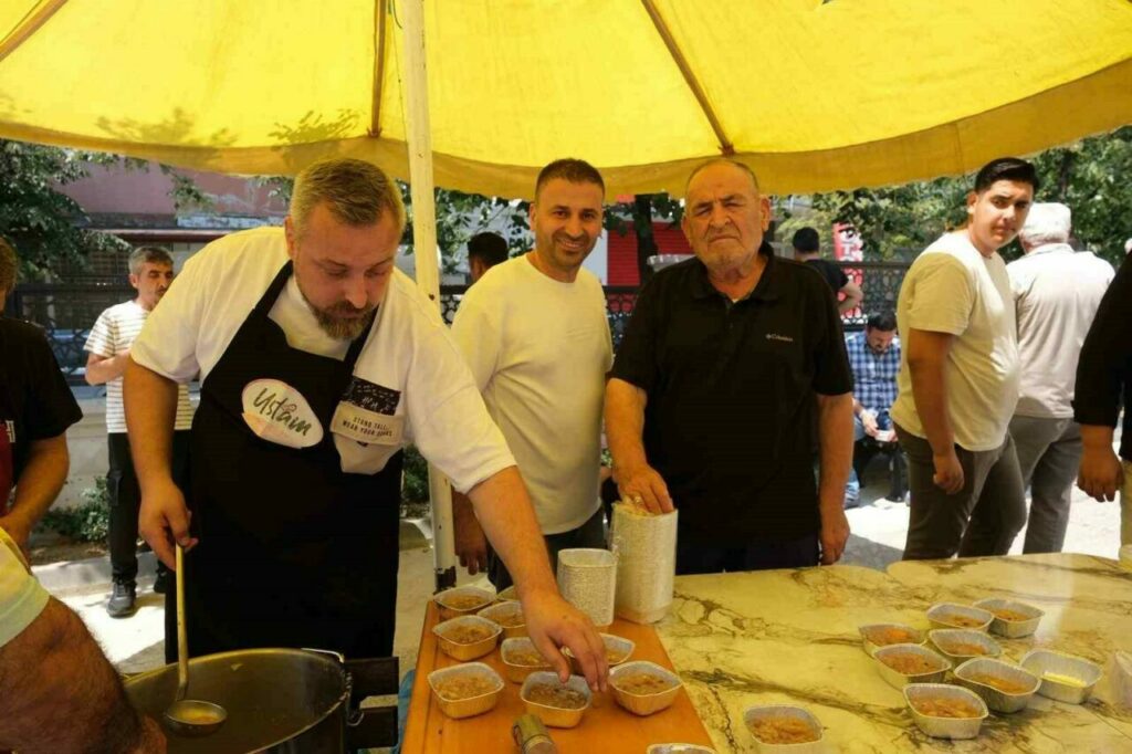 Bursa’nın Osmangazi ilçesine bağlı Emek Mahallesi’nde bir esnaf cami bahçesinde bin 200 kişiye aşure dağıttı.