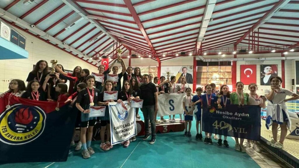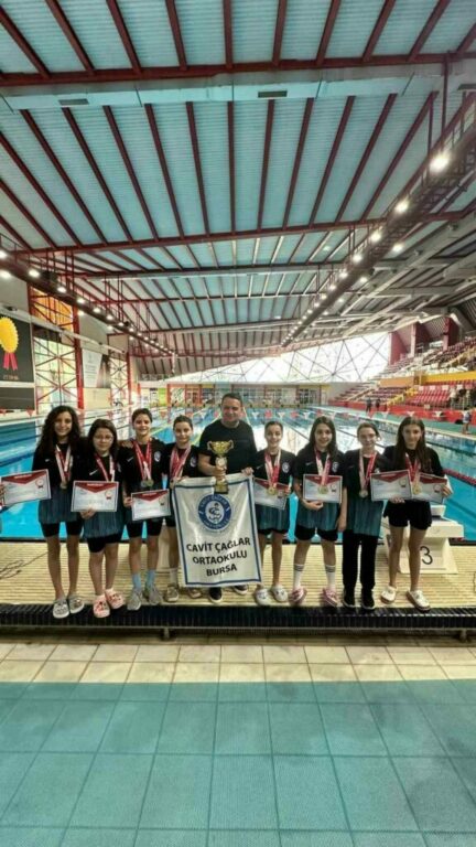 Mersin’de düzenlenen ’Okul Sporları Küçük Kızlar Yüzme’ yarışmasında, Cavit Çağlar Ortaokulu öğrencileri 14 altın ve 3 gümüş madalya alarak Türkiye şampiyonu oldu. Mersin’de düzenlenen ve Türkiye’nin farklı illerinde bulunan okullar arasında düzenlenen yarışmada, Bursa’dan katılım sağlayan Cavit Çağlar Ortaokulu öğrencileri Bilge Bektaş, Meryem Çetin, Azra Derin Karabulut, Meyra Ulu, Azra Kocaman Büşra Şahin, Menekşe Kuzucuk […]