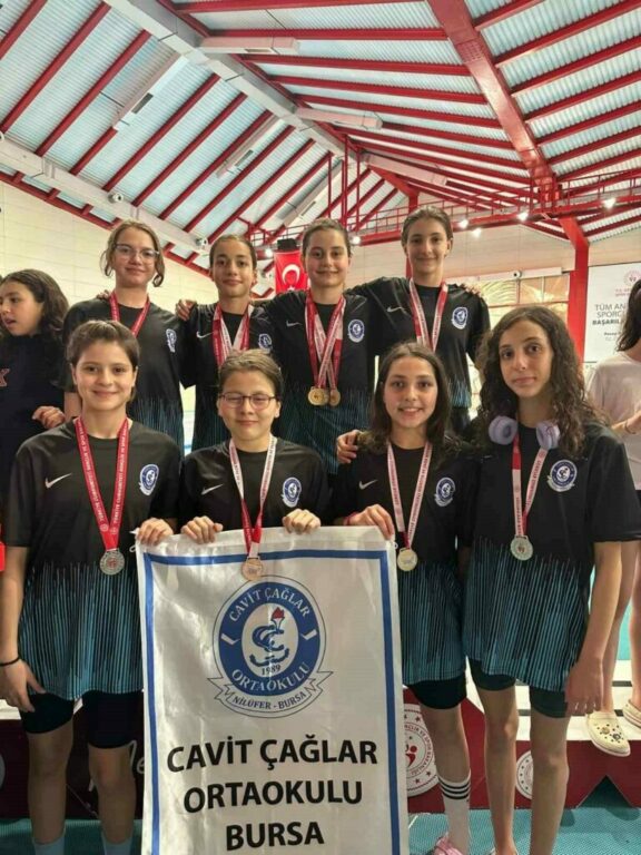 Mersin’de düzenlenen ve Türkiye’nin farklı illerinde bulunan okullar arasında düzenlenen yarışmada, Bursa’dan katılım sağlayan Cavit Çağlar Ortaokulu öğrencileri Bilge Bektaş, Meryem Çetin, Azra Derin Karabulut, Meyra Ulu, Azra Kocaman Büşra Şahin, Menekşe Kuzucuk ve Ela Bilgiç 14 altın ve 3 gümüş madalya alarak Türkiye şampiyonu oldu. Turnuva boyunca öğrencilerine destek veren Cavit Çağlar Ortaokulu Müdürü Ramazan Yürük, “Öğrencilerimizi tebrik ediyor, başarıları ile gurur duyuyorum. Hiçbir başarının tesadüf olmadığını biliyoruz. Yönetim olarak akademik başarının yanında, sportif ve kültürel başarılarını da önemsiyoruz. Öğrencilerimize, velilerimize ve antrenörlerimize teşekkür ederim” dedi.