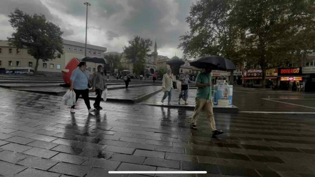 Bursa’da sabah saatlerindeki bulutlu hava, öğle saatlerinde yerini yağmura bıraktı. Aralıklarla şiddetini arttıran yağmura hazırlıksız yakalanan kimi vatandaşlar kapalı mekanlara sığınırken, kimi ise şemsiyenin altında yağmurun tadını çıkardı.