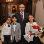 Türkiye Büyük Millet Meclisinin açılışının 104. yıl dönümü ve 23 Nisan Ulusal Egemenlik ve Çocuk Bayramı kutlamaları münasebetiyle İl Milli Eğitim Müdürü Dr. Ahmet Alireisoğlu ile Gülhanım Karasu İlkokulu öğretmen ve öğrencileri, Vali Mahmut Demirtaş’ı makamında ziyaret etti.