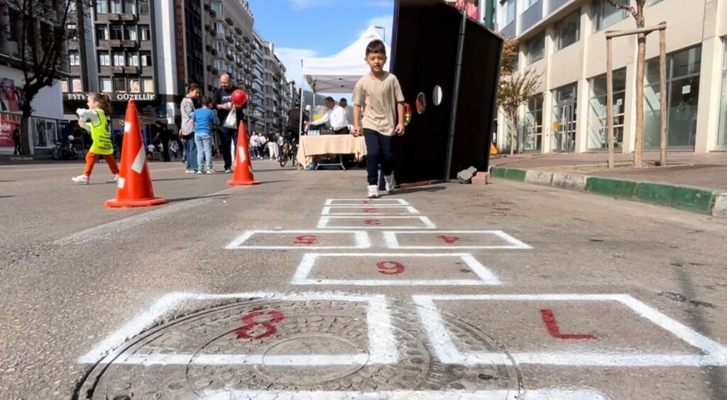 Bursa Büyükşehir Belediyesi tarafından Atatürk Caddesi, 2 saat trafik akışına kapatılarak çocuklar için oyun alanı oldu. Aileleri ile gelen çocuklar seksek, voleybol, misket, tenis gibi oyunlar oynayarak doyasıya eğlendi. Yeni arkadaşlar edinen çocukların aileleri, etkinlikten memnun kaldıklarını belirtti.