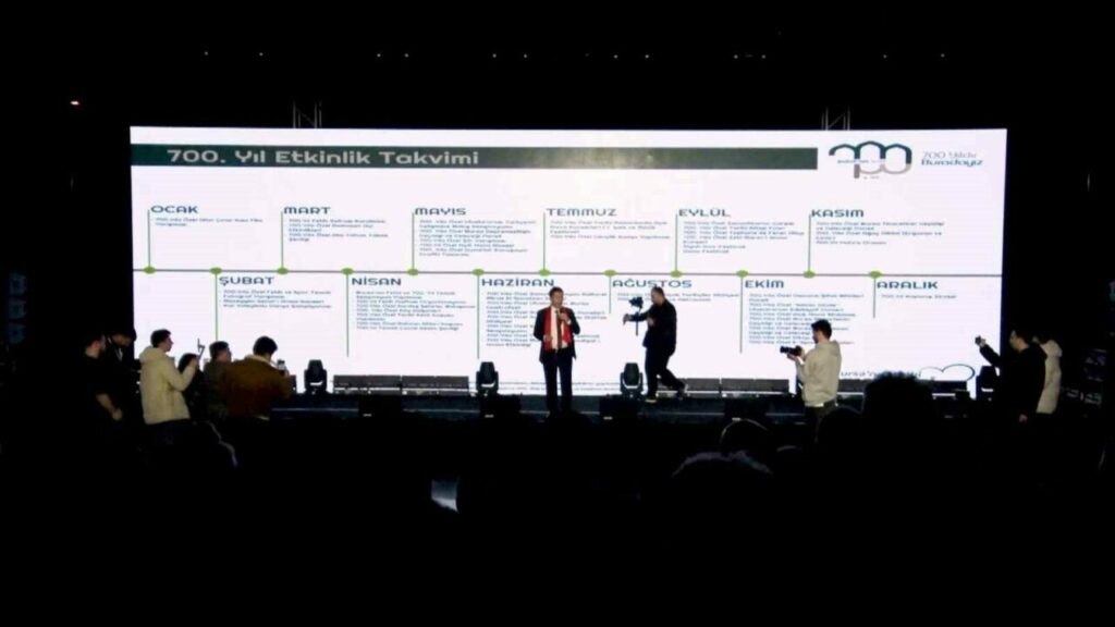 2026 Ocak ayından Aralık ayına kadar etkinliklerin devam edeceğini kaydeden Aydın, “O gün onların Bursa’yı fethederek bıraktığı izler, eserler ve imalathaneler vardır. Bunları korumak ve yaşatmak görevi de bizlere düşmektedir. Normal şartlarda fetih etkinlikleri ve Osman Gazi’yi anma şenlikleri 6 Nisan’da başlayıp bir ay boyunca devam ediyordu. Nisan ayı boyunca da çeşitli etkinlikler yapıyorduk. Bu yıl 8 ay önce ekibimiz çalışmaya başladılar, profesyonel destekler aldılar. 2026’yı Ocak ayından başlayarak 700’üncü yıl olarak Aralık ayına kadar çeşitli etkinliklerle bir yıl boyunca anma ve kutlama yapılacak. Bunların içerisinde birçok etkinliklerimiz olacak. Otuz altı kardeş şehrimizin Bursa’da buluşmasıyla, dünyanın dört bir yanındaki kardeş şehirlerimizle birlikte, etkinliklerden uluslararası tarihi kent koşusuna, rahvan atlarından çeşitli organizasyonlara kadar bir yıl boyunca 700. yılı anacağız” şeklinde konuştu.