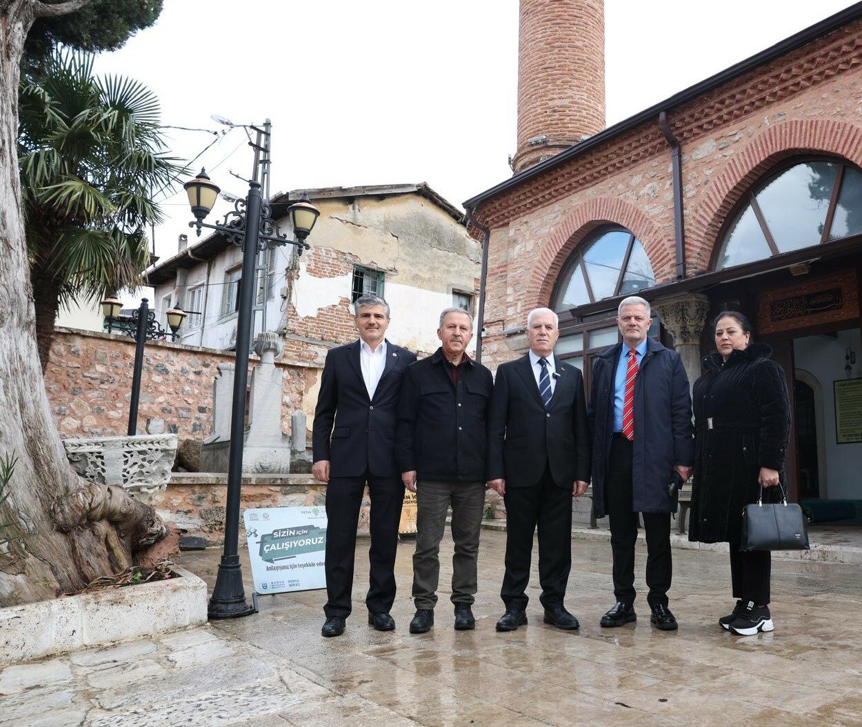 Bursa Büyükşehir Belediye Başkanı Mustafa Bozbey de Alaüddin Paşa Camii’ni ziyaret ederek çalışmaları yerinde inceledi. Günümüzden tam 700 yıl önce Bursa’nın fethinin ardından inşa edilen caminin Bursa tarihi açısından büyük önem taşıdığını söyleyen Başkan Mustafa Bozbey, “Gerçekleştirdiğimiz uygulamayla hazireyi olduğu gibi ortaya çıkardık. Arkadaşlarımız yoğun bir çalışma yürüttü. Alanda dönemin önemli insanlarının mezarları da bulunuyor. Hem büyüklerin hem de çocukların mezarları var. Bu kıymetli mezar taşları caminin haziresinde yeniden gün yüzüne çıkarıldı” dedi.