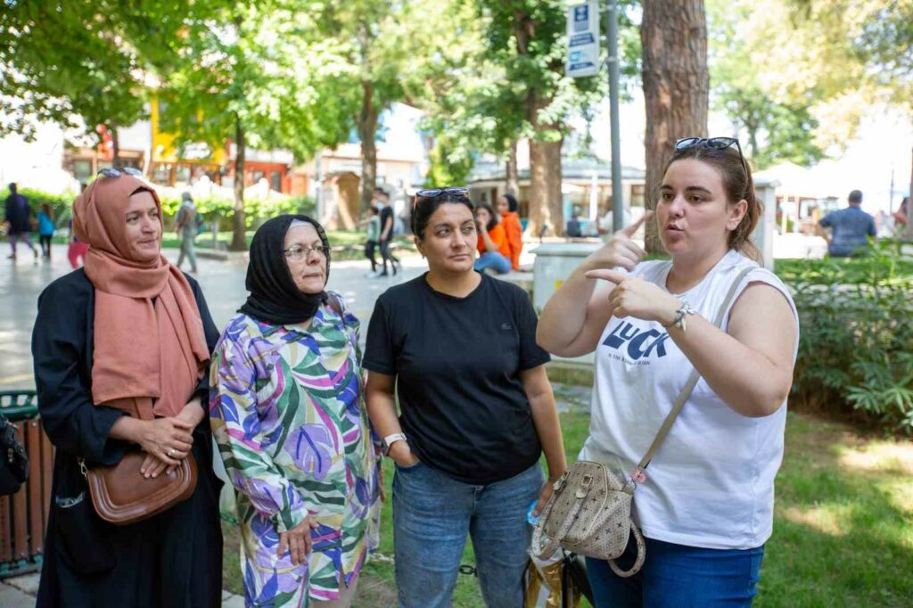 Bursa’nın turizmden hak ettiği payı alabilmesi için çalışmalarını sürdüren Bursa Büyükşehir Belediyesi, diğer yandan kent sakinlerinin ve özel gereksinimli bireylerin de kültürel zenginlikleri yakından tanımasına imkan sağlıyor. ‘Engelsiz Turizm’ projesiyle engelli bireyleri kentin doğal, tarihi ve turistik değerleriyle buluşturan büyükşehir belediyesi, son olarak Bursa İşitme Engelliler Derneği üyesi kadınları proje kapsamında ağırladı. Osmangazi Panorama 1326 Fetih Müzesi, Tophane Meydanı ve Mudanya’yı gezen kadınlar, Büyükşehir Belediyesi tur rehberlerinin anlattıklarını işaret dili tercümanları aracılığıyla dikkatle dinledi. Keyifli bir gün geçiren vatandaşlar, hizmetlerinden dolayı Bursa Büyükşehir Belediyesine teşekkür etti.