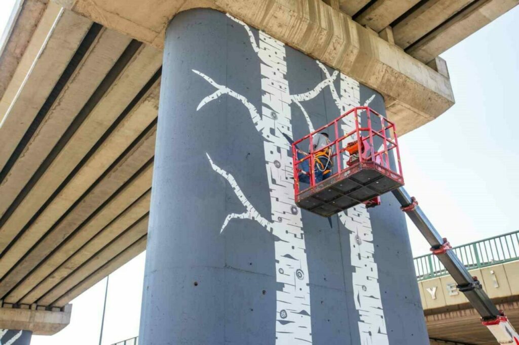 BUSKİ Avrupa Konseyi Bulvarı bağlantı köprülü kavşağı sütunları ise modern kentsel sanat anlayışıyla tasarlanan ‘huş ağacı’ motifiyle estetik bir görünüme kavuşturuldu. Beş köprü ayağı ve iki duvar üzerine yapılan uygulama ile yoğun trafik akışının yaşandığı bölge görsel açıdan da zenginleştirildi. Şehir merkezinde aktif kullanılan alanları estetik bir görünüme kavuşturan ekipler, vatandaşların günlük yaşamında çevre bilincinin oluşmasını amaçlıyor.