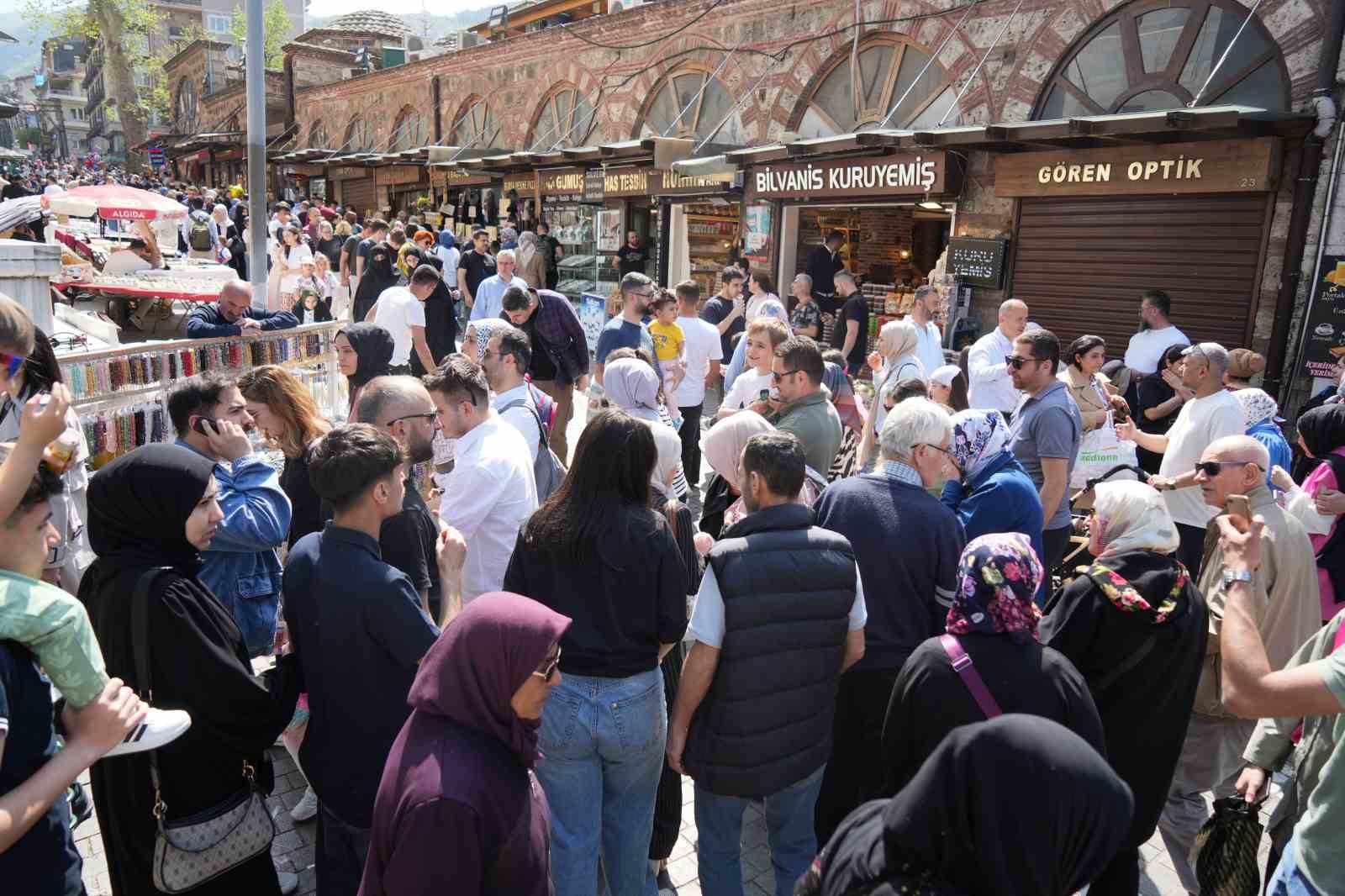 Bursa’da Ramazan Bayramı’nın ilk gününü aileleriyle bayramlaşarak geçiren vatandaşlar, ikinci gününde tarihi mekanlara akın etti. Havanın da güzel olmasını fırsat bilen Bursalılar ve şehir dışından gelenler başta Ulu Cami, Emir Sultan Cami, Yeşil Cami ve Osmanlı Devleti’nin kurucuları Osman Gazi’nin ve Orhan Gazi’nin türbelerini ziyaret etti. Kimi toplu taşıma ile kimi ise kendi aracıyla geziye çıkınca trafikte uzun kuyruklar oluştu. Ulu Cami ve Hanlar Bölgesinde yoğunluk sebebiyle, adım atacak yer kalmadı.