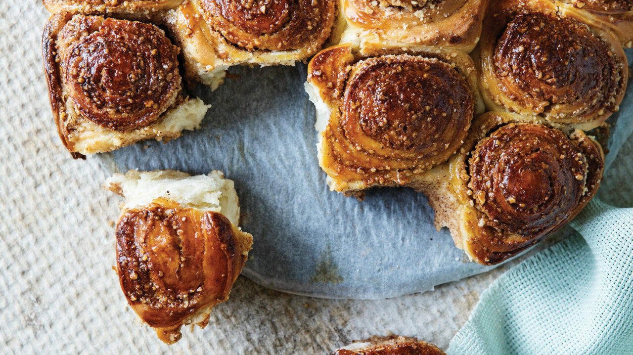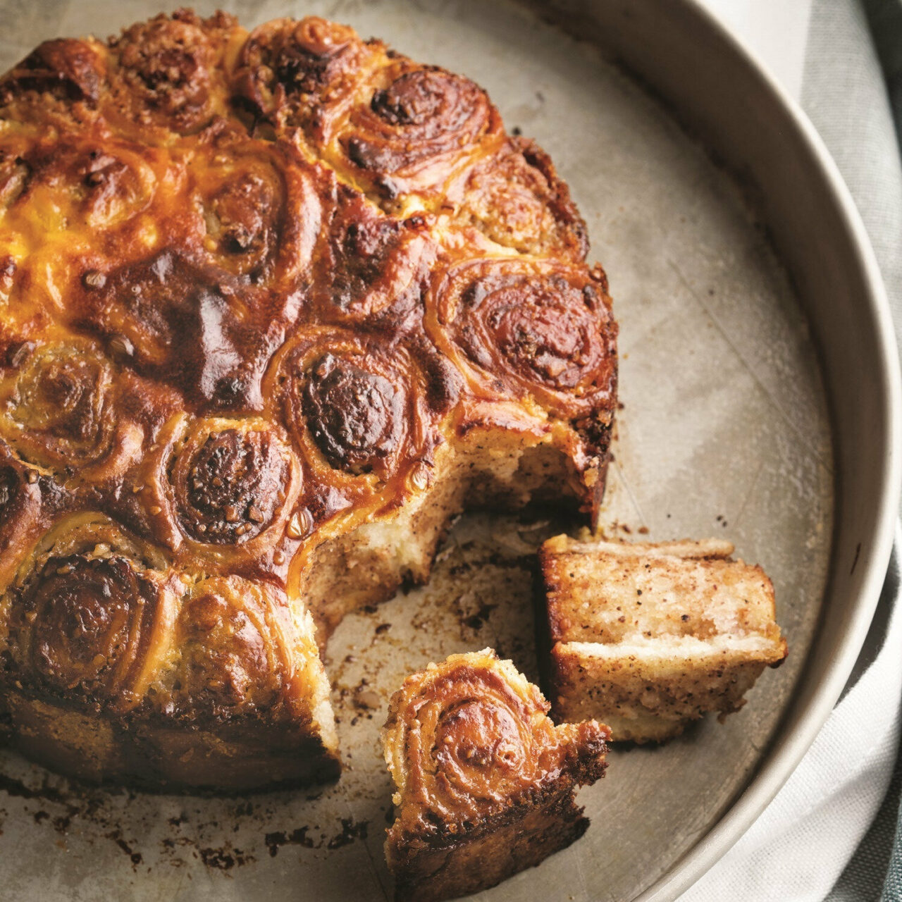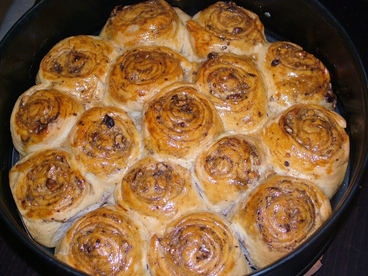 Açtığınız hamurun üzerine cevizli harcın üçte birini yayın ve rulo yapın. Ruloyu eşit parçalar halinde kesin. Diğer iki beze için de aynı işlemi uygulayıp yağlı kağıt serili bir fırın tepisine dizin.