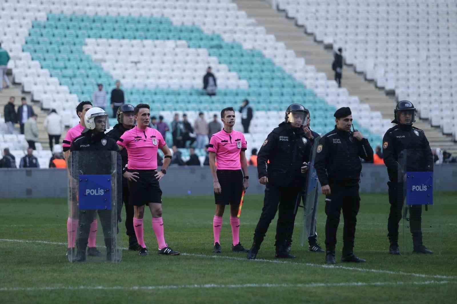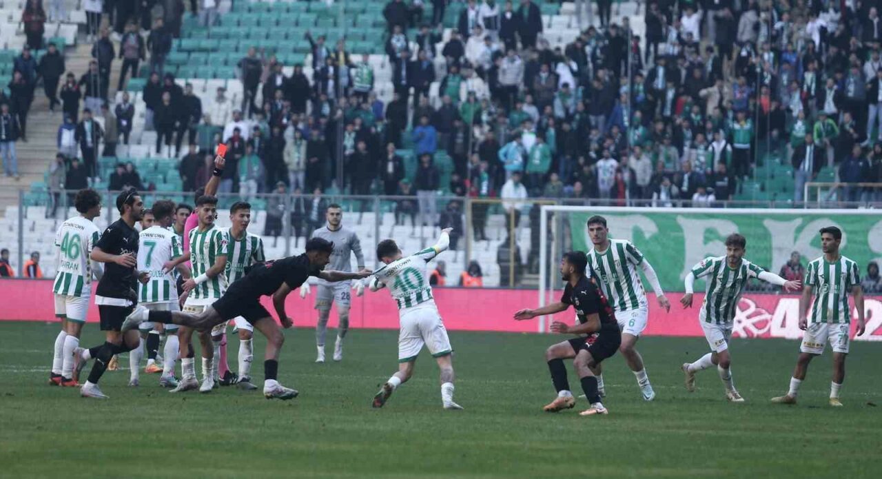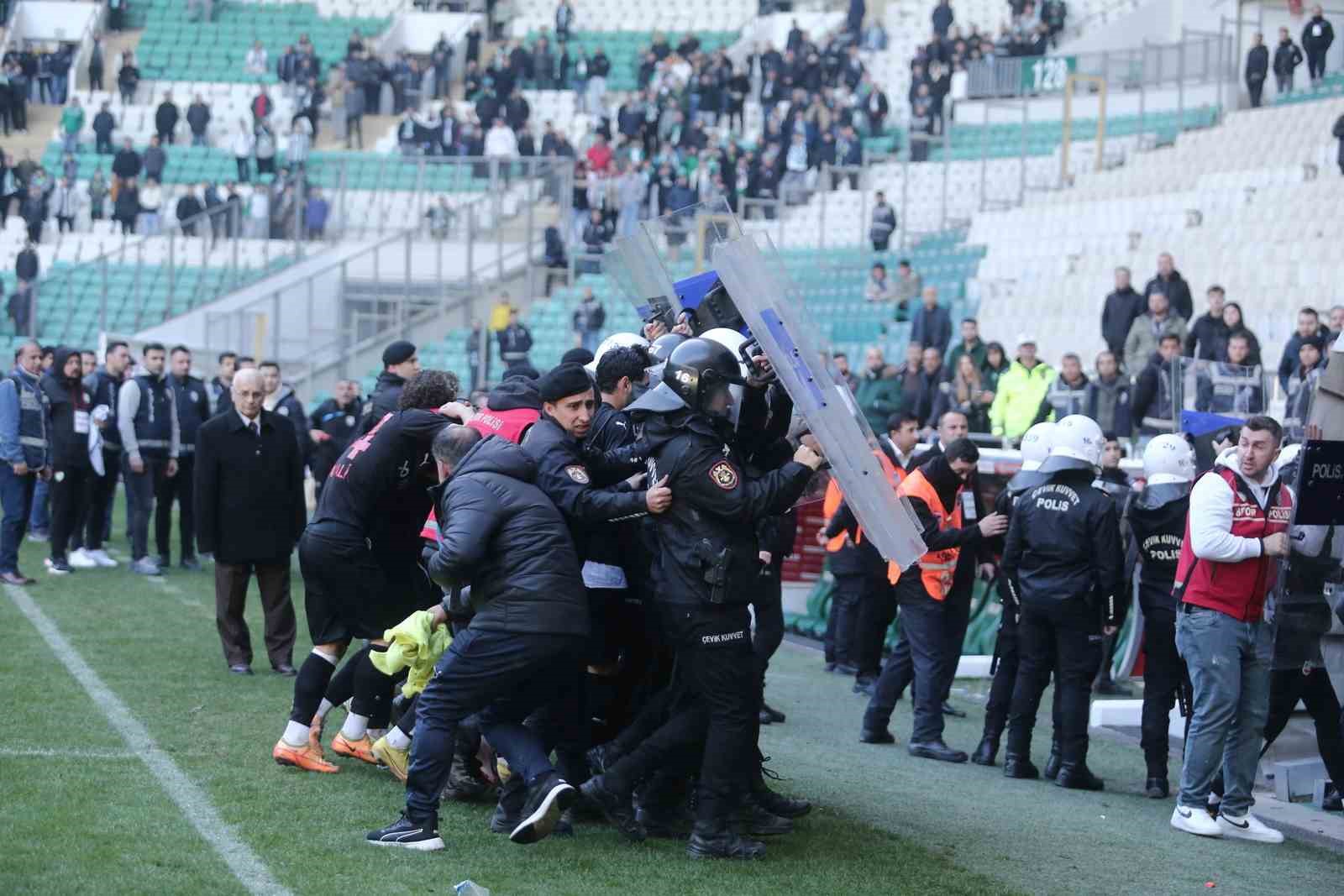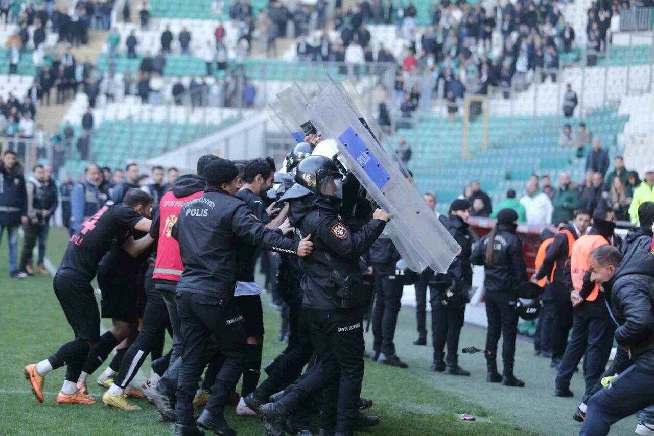 Hakem Burak Taşkınsoy, Çağatay Yılmaz’a kırmızı kart gösterince futbolcular arasında arbede çıktı. Olaylar sonrasında Diyarbekirspor’dan Serhat Çalışkan, Cem Celik ve Bünyamin Yürür, Bursaspor’dan ise Çağatay Yılmaz ile Bilal Güney kırmızı kartla cezalandırıldı.