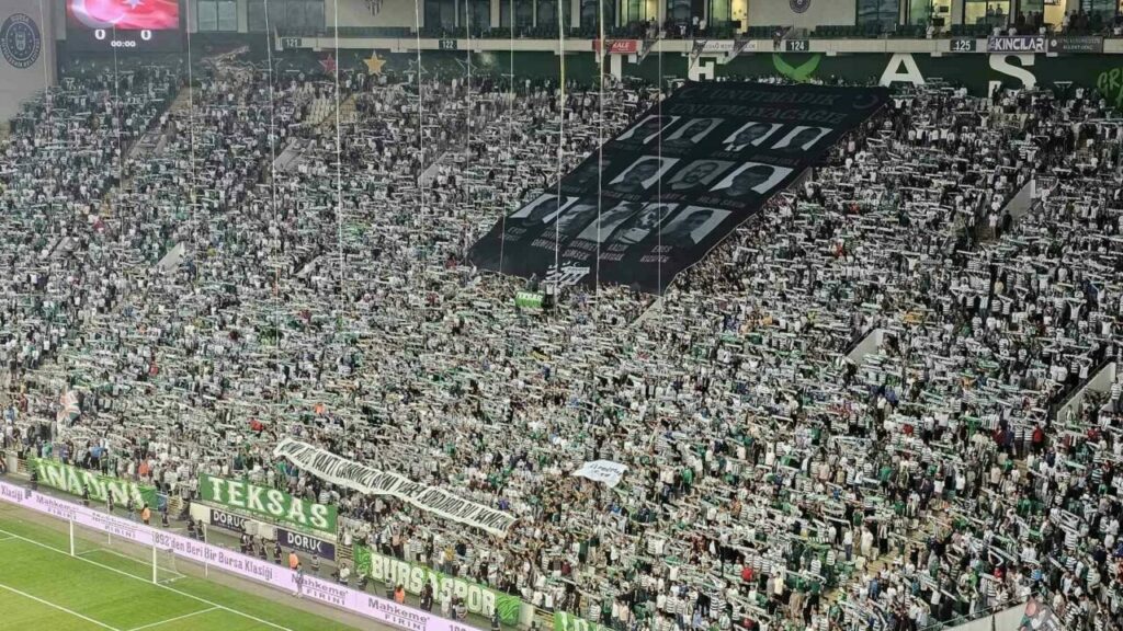 Yeşil-beyazlı taraftarlar, üzerinde “Aynı ateş yaktı canımızı aynı yürek söndürür bu yangını” yazılı pankart açarak birlik mesajı verdi. Ayrıca hayatını kaybeden şehitlerimizin isimleri ve fotoğraflarının yer aldığı pankart tribünlerde sergilendi.