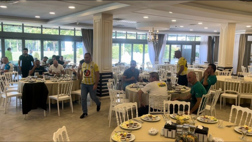 Bursaspor’un taraftar grubu Teksas, bugün saat 19.00’da oynanacak Bursaspor-Muşspor maçı öncesi Muş’tan gelen taraftarlar ile beraber yemekte buluştu. Merinos Atatürk Kongre ve Kültür Merkezi’nde gerçekleşen yemekte taraftarlar, formaları giyip yemekte sohbet etti. Oynanacak maçın her iki taraf içinde iyi geçmesini dileyen taraftarlar, yemek sonrası hatıra fotoğrafı çektirdi. Yeşil-beyazlılar, misafir takım taraftarını ağırlamaktan memnun olduğunu söyledi.