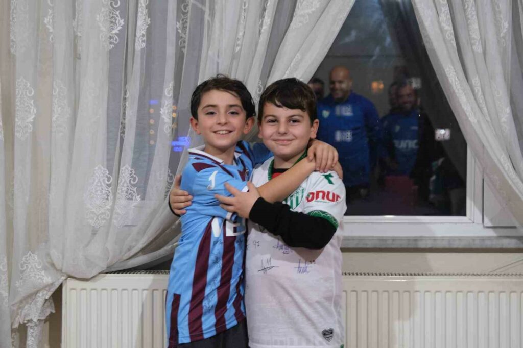 Ziyaretin ardından Yusuf Emir’e yeşil-beyazlı futbolcular imzaladığı Bursaspor ve Trabzonspor formalarını hediye etti.
