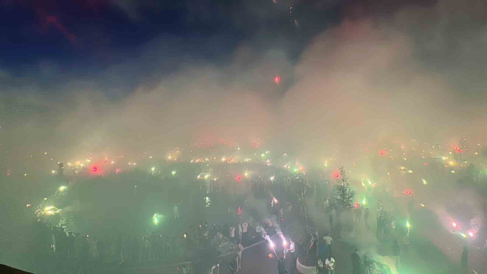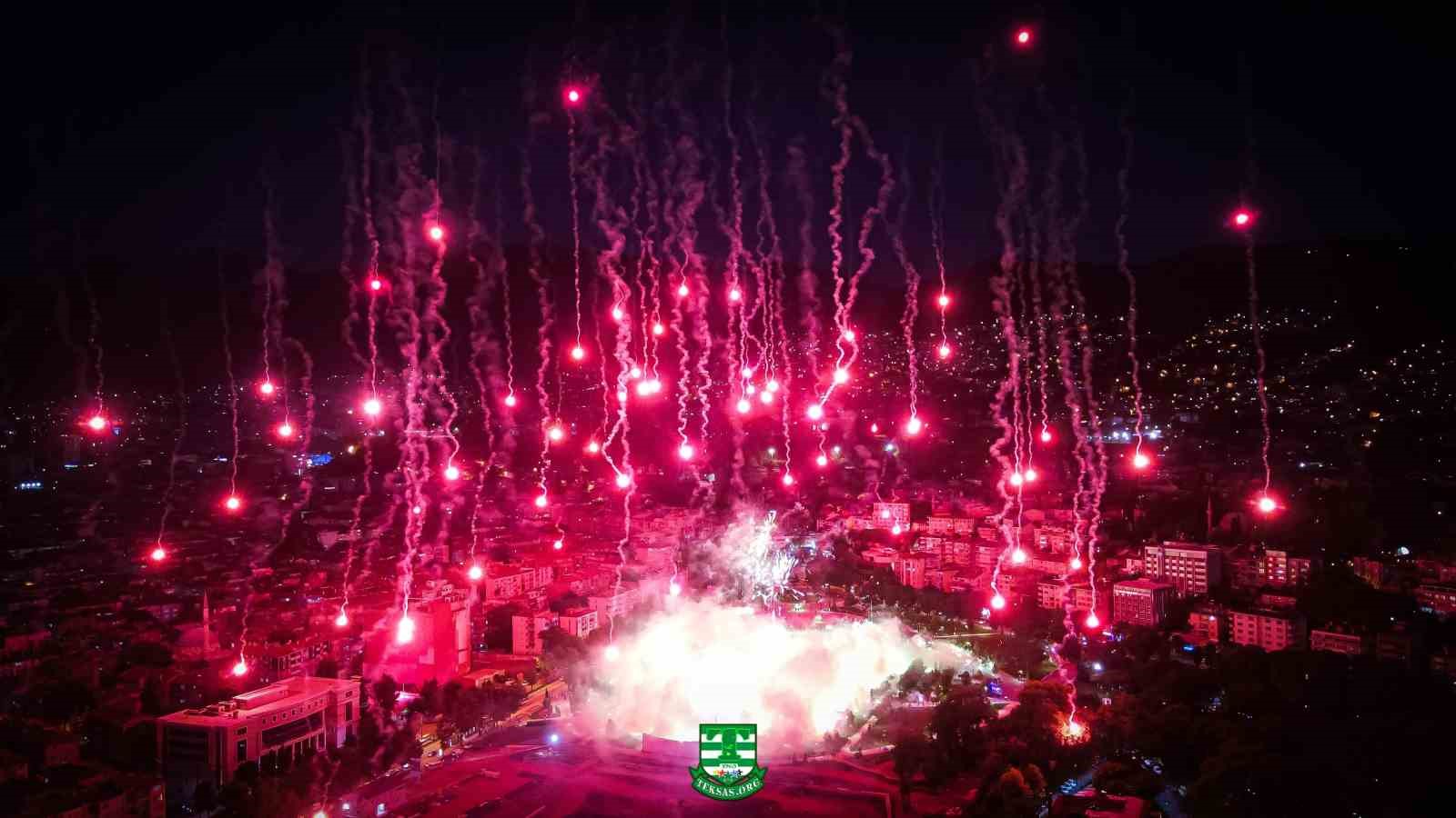 Başkan Enes Çelik’in göreve başlamasının ardından ‘Yanındayım’ kampanyasıyla birlikte birlik beraberliğini tekrar hatırlayan yeşil-beyazlı camia, bu akşam bir araya geldi. Bursaspor Kulübü’nün 61. kuruluş yıldönümünde taraftarlar her şeyin başladığı nokta olan Atatürk Stadyumu Miras Alanı’nda buluştu. Binlerce meşalenin yandığı organizasyonda tam 1963 adet de hava fişek atıldı. Gecenin gündüze çevrildiği görülürken, Bursaspor taraftarı muhteşem tezahüratlarla da yeri göğü inletti. 20 bine yakın Bursaspor taraftarı adeta gelecekteki güzel günlerin ateşini bugünkü organizasyonla birlikte yaktı ve bugünü milat kabul etti.