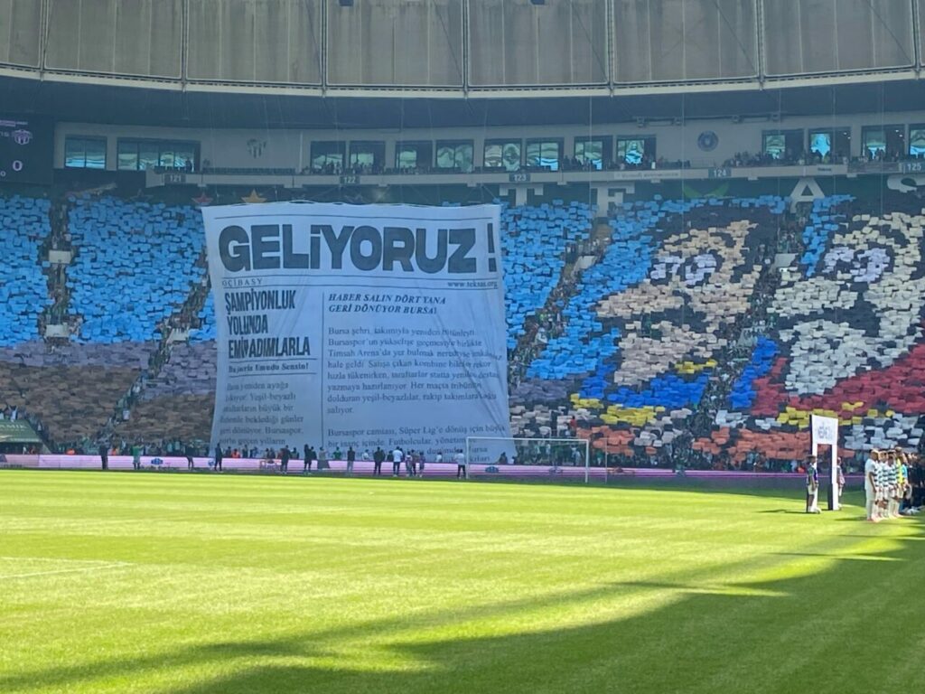 Bursaspor taraftarından muhteşem koreografi: GELİYORUZ Yeşil beyazlı taraftarlar bugün şampiyonluk kupasını kaldıracağı Bornova 1877 maçında, maraton ve güney kale arkasındaki ‘GELİYORUZ’ başlıklı koreografi çalışması büyük alkış aldı. Giriş: 20-04-2025 16:34Güncelleme: 20-04-2025 16:35 Bursaspor