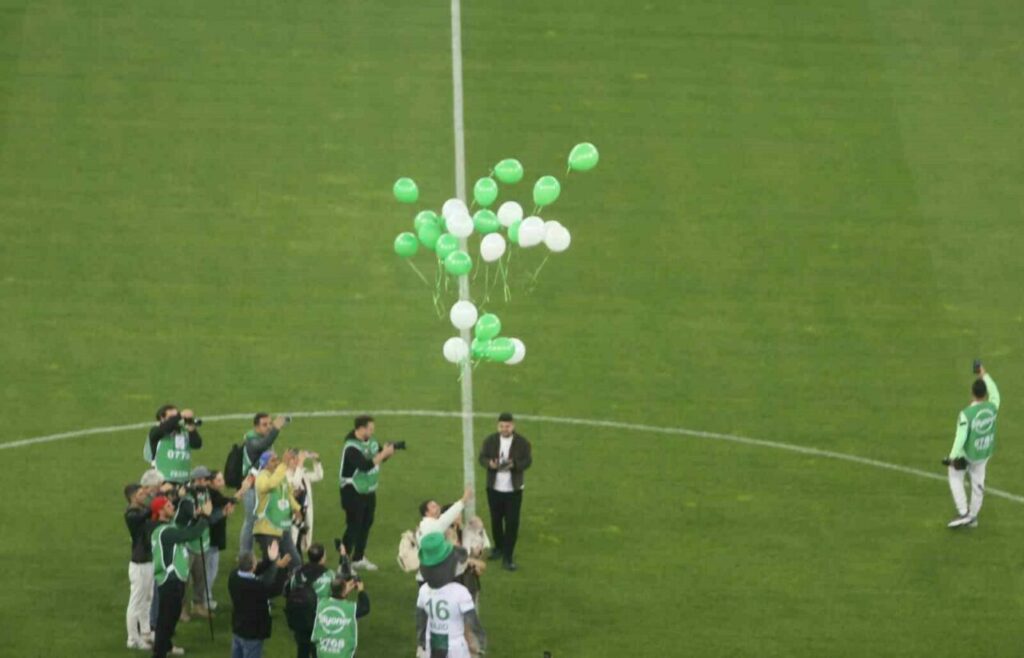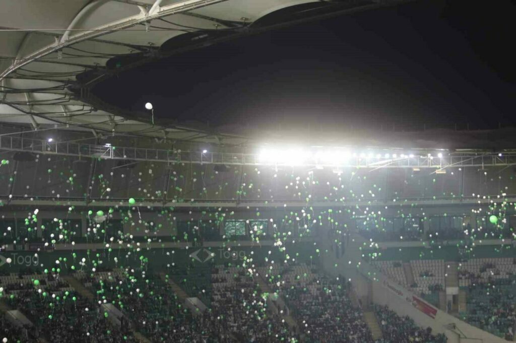 Timsah Arena’da Bursaspor taraftarlarının yoğun ilgi gösterdiği organizasyonda Çağan Ata, anne ve babasıyla birlikte sahaya çıktı. Tribünleri dolduran taraftarlar, “Çağan sen bizim her şeyimizsin” tezahüratlarıyla aileye destek oldu. Duygusal anların yaşandığı etkinlikte, yeşil beyaz renkli 20 bin balon gökyüzüne bırakıldı.